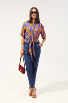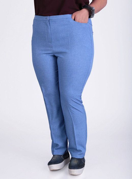 Брюки из ткани лен-вишер. Пояс с резинкой по бокам. По передней части брюк имеются функциональные карманы джинсового стиля. На задней половинке брюк есть кокетка и прорезные карманы в рамку. Классические, зауженные к низу однотонные брюки с заутюженными стрелками подойдут как для деловых встреч, так и для романтических прогулок.