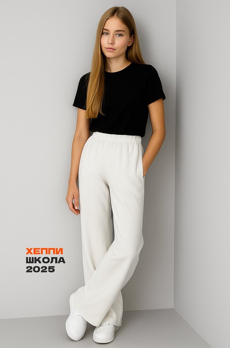 Широкие штаны палаццо подойдут как на каждый день, так и для физкультуры в школе, создавая аккуратный и стильный образ. Лаконичный фасон базовых детских брюк всегда остается удобным и современным.