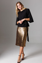 Нарядные длинные брюки смотрятся изысканно благодаря особому мягкому бархату с деликатным переливом — это не только модно, но еще и практично. Плотная структура ткани защищает от ветра и дарит ощущение уюта в прохладное время года. Их глубоки черный цвет добавляет образу выразительности и легко сочетается с разными элементами осеннего гардероба.