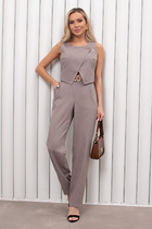 Брюки женские из льняной ткани для повседневной носки. Брюки свободного, слегка расширенного силуэта. Верхний срез брюк обработан притачным поясом со вставкой на резинке в задней части брюк с застежкой на одну обметанную петлю и одну пуговицу, а также в боковом шве имеется потайная застежка-молния. На передней части брюк имеется шесть складок и боковой прорезной карман в шве. Задняя часть брюк имеет две талиевые вытачки. Стильные брюки в уникальном коричневом оттенке отлично будут дополнять каждый ваш образ. В данных брюках вы будете смотреться очень изящно и обворожительно, они отлично подчеркнут всю красоту вашей фигуры и скроют видимые несовершенства.