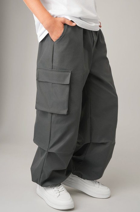 Свободный силуэт, уличный стиль и внимание к деталям — брюки парашюты графитового цвета созданы для мальчика, который ценит комфорт и самовыражение. Штаны джоггеры идеальны для активных подростков и стильных образов.