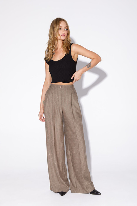 Широкие брюки-палаццо из ткани в пайетки.