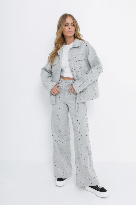 Широкие брюки из хлопкового джинса с перфорацией.