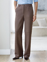 Детали: брюки с притачным поясом со шлевками, складки у пояса, застежка на молнию и пуговицу, боковые карманы, заутюженные стрелки. Задние части брюк с вытачками и имитацией карманов.