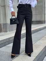 Детали: притачной пояс со шлевками, передние половины с заутюженными стрелками, застежка на молнию и потайные крючки, боковые карманы. Задние части брюк с вытачками и заутюженными стрелками. Пояс брюк без резинки.