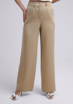 Детали: брюки клёш с притачным поясом со шлёвками, наклонные карманы в боковых швах, застёжка на молнию и крючок, талиевые вытачки на передних и задних половинках брюк.