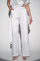 Детали: брюки О-силуэта, притачной пояс, пояс и манжеты по низу на резинке, карманы в боковых швах.