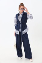 Модель без пояса, без карманов. В левом боковом шве потайная застёжка молния.