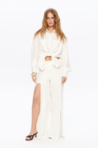 Брюки женские из хлопкового трикотаж в стиле "каррот" с небольшими складками по линии талии. Карманы брюк прорезные, с боковыми вставками. Вдоль боковых швов брюк нашита декоративная трикотажная лента с серебристой нитью. Низ брюк заужен. Пояс брюк настрочен на эластичную резинку, дополнительно регулируется шнуром.