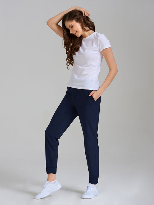 Брюки изготовлены из легкой плащевой ткани.Силуэт брюк зауженный. карманы брюк - в боковых подрезах. Пояс брюк с эластичной резиной, по талии дополнительно регулируется шнуром.
