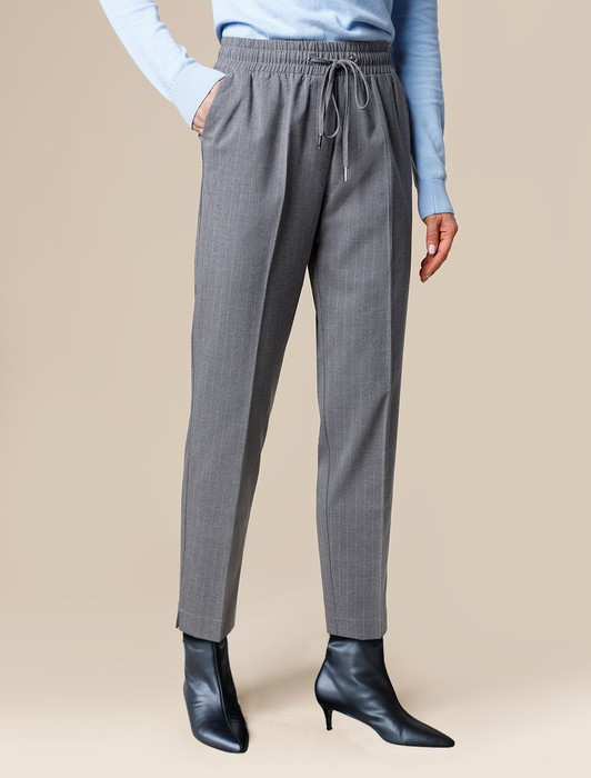Брюки с поясом на резинке из премиальной поливискозы с эластаном