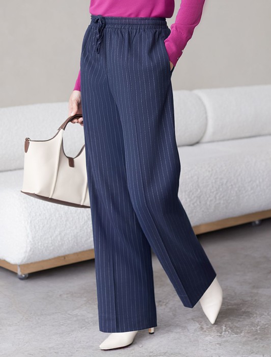 Состав: 65%ПЭ 33%Вис 2%ПУ Параметры модели на первом фото: Рост 172, бюст 88, талия 64, бедра 88Брюки свободного кроя выполнены из костюмной ткани в полоску. Модель с карманами и поясом на резинке дополнена регулируемым шнурком из основной ткани. Изделие не сковывает движений и подходит для любого типа фигуры. Сочетается в костюме с жилетом D27.001