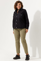 Брюки женские прямого силуэта, зауженные к низу. Выполнены  из турецкого денима со трейчем. Брюки  с притачным поясом и резинкой по спинке. По переду  обработаны боковые карманы. Застёжка  на тесьму-молнию, петлю и джинсовую пуговицу. На задних половинках  брюк расположены накладные карманы.