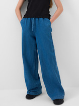 Это широкие джинсы для девочки подростка. Силуэт wide leg с высокой посадкой. Пояс на резинке дополнен внутренним шнуром для удобной регулировки. Удобные боковые карманы.