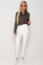 Идеальный выбор для создания модного и комфортного образа. Брюки коричневого цвета выполнены в классическом прямом крое, который подчеркивает силуэт и подходит для любого типа фигуры. Модель оснащена удобной обтачкой пояса мягкой изнанкой, что обеспечивает максимальный комфорт при носке. Искусственная кожа высокого качества придает изделию эффектный вид.