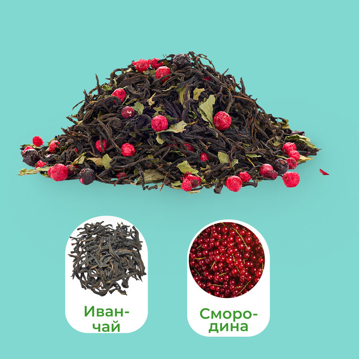 иван-чай черный ферментированный, смородина красная ягоды, смородина листья, смородина черная ягоды
