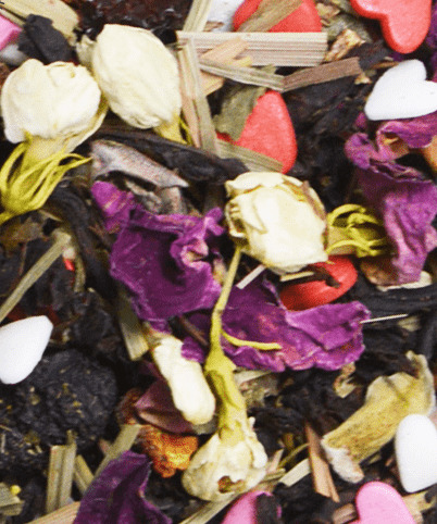 Купаж из классических черных индийских чаев с добавлением кусочков сублимированной малины, цедр шиповника, лимонграсса, бутонов роз и жасмина, кондитерской посыпки. Содержит пищевые ароматические масла