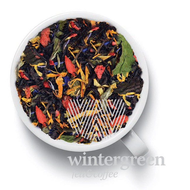 Краткое описание: Купаж черного чая, с добавлением белого чая Бай Му Дань, "ягодами долголетия" годжи, кусочками клубники, лепестками календулы и василька с освежающим цитрусовым ароматом с теплыми медовыми нотками.