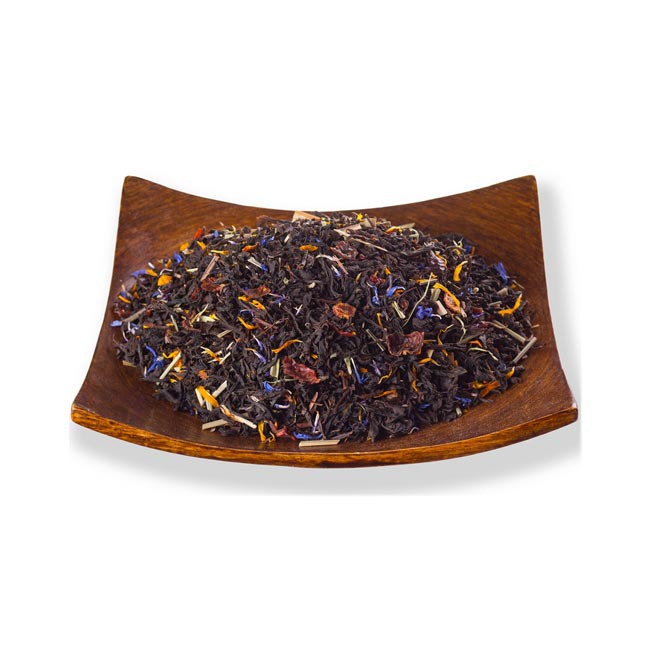 Состав, полюбившийся многим приверженцам чайных смесей. Черный байховый цейлонский и индийский чаи с календулой, васильком, лимонной травой, шиповником и ароматом апельсинового масла. Прозрачный янтарный настой чая имеет крепкий, свежий вкус с выраженным цитрусовым ароматом.