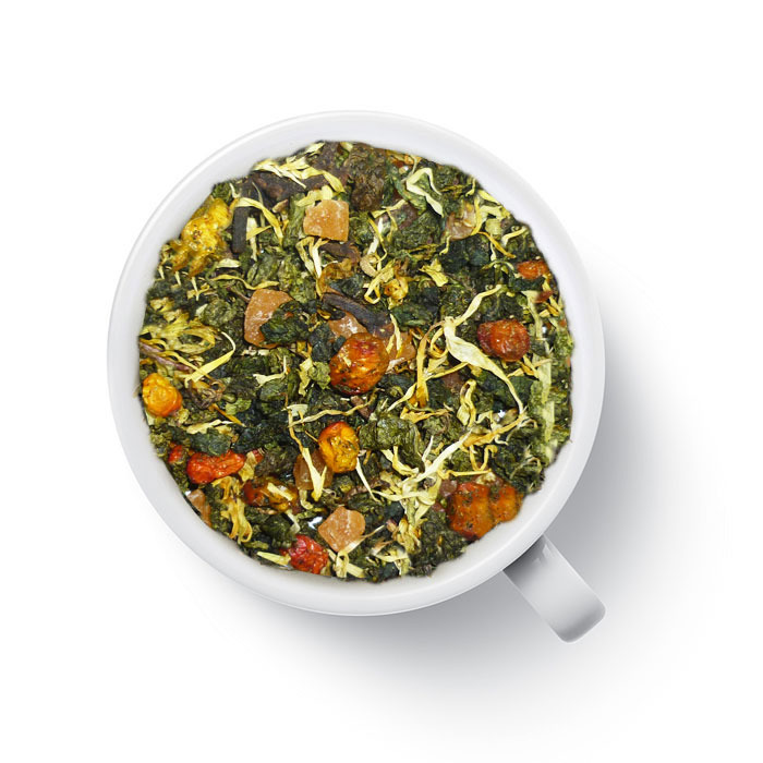 Краткое описание: Зеленый чай с ягодами облепихи, кусочками сладкого ананаса, лепестками календулы, ярким сладким ягодным ароматом и длительным послевкусием с пряными нотками.