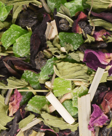 Купаж на основе традиционного китайского чая Сенча с добавлением цукатов, лимонной травы, листьев мяты и сафлора. Содержит пищевые ароматические масла.Идеально для приготовления холодного осежающего чая.