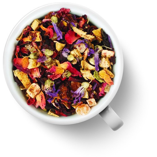 Краткое описание: Чайный напиток. Состав: цукаты ананаса и папайи, цедра лимона и апельсина, кусочки вишни, лепестки мальвы и розы, гибискус. Напиток ароматизирован натуральными маслами.