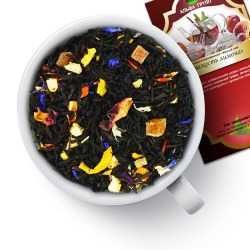 Черный чай с добавлением цедры апельсина, кусочков дыни, лимонной травы, лепестков василька и календулы с ароматом лимона.
