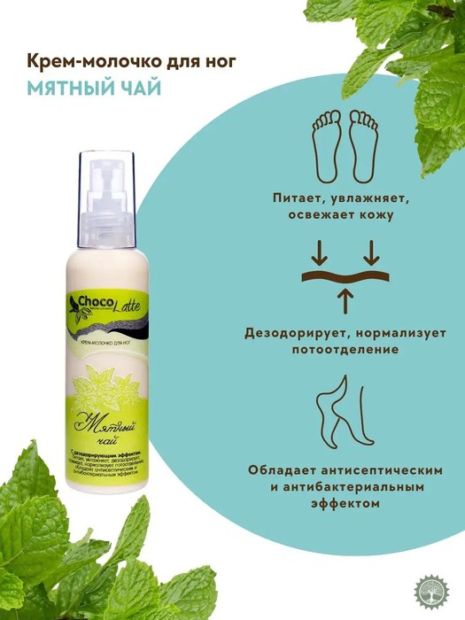 Совместные покупки Тюмень Косметика и парфюмерия Уход за ногами — CHOCOLATTE Крем-Молочко для ног дезодорирующий Мятный Чай