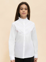 Стильная блузка станет отличным дополнением к вашему гардеробу! Модель выполнена из хлопкового полотна с добавлением эластана. Блузка с короткими пышными рукавами из шифона, она отлично подойдет для создания классных школьных образов!