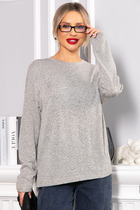 Блузка-кимано из трикотажного полотна с блеском. Спущенный рукав, внизу тритачной манжет. По борту притачная планка. По бокам разрезы. Сьемный пояс.