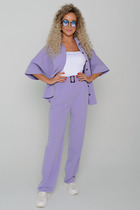 Брюки прямые, широкие из текстильного полотна штапель-креп. По талии притачной пояс на резинке с завязками из основного полотна.