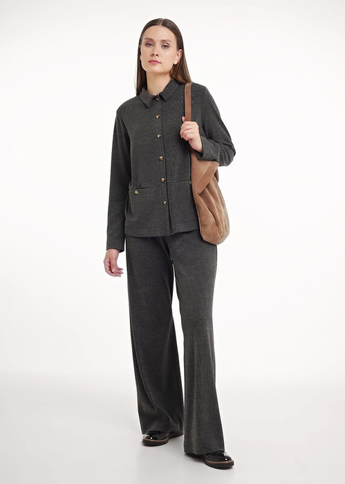 Широкие брюки из трикотажного полотна рибана с вискозой. Модель свободного, прямого кроя. Притачной пояс на внутренней резинке.