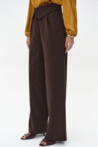Брюки клеш из текстильного полотна с добавлением эластана - габардин. Притачной пояс со шлевками, гульфиком и застежкой на молнию, пуговица. На спинке накладные карманы. По переду и спинке вертикальные застроченные защипы.
