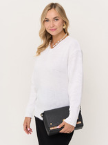 Джемпер из вискозного трикотажного полотна кашкорсе,состоящая из двух изделий скрепленных между собой по горловине,боковым швам - имитация многослойности.По горловине,пройме майки окантовка.По борту джемпера застежка на пуговицы. Длинный втачной рукав.