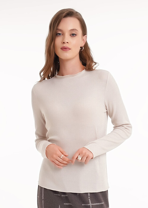 Джемпер из трикотажного поливискозного полотна кашкорсе с эластаном. Прямого силуэта. Длинный втачной рукав. По горловине цельвыкроенная стойка. По горловине, низу рукава и изделия обработка мелкий оверлок.