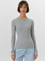 Вязаный джемпер прямого силуэта из вискозной пряжи с добавлением нейлона. Длинный втачной рукав. Основное переплетение гладь. Округлая горловина с бейкой. По низу изделия и рукавов узкие манжеты, нашивка металл.
