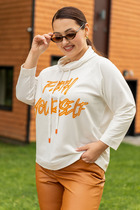 Вязаный джемпер укороченный из вискозной пряжи с добавлением нейлона, переплетения гладь. Втачной короткий рукав. Округлая горловина, по горловине бейка. По низу изделия и рукавов манжеты,в качестве декоративного элемента над манжетами вывязаны косы.