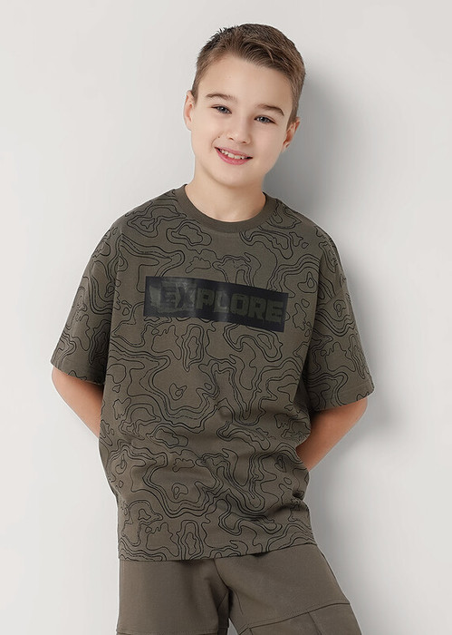 Совместные покупки Тюмень Детская одежда Футболки, майки — Clever Футболка детская для мальчика CLE 865756/12кдн_п т.хаки/чёрный