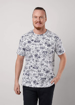 Футболка из трикотажного полотна с коротким рукавом и круглой горловиной. Дополнена имиджевым принтом. Отличный вариант для встреч с друзьями и прогулок.