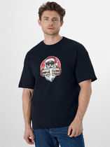 Футболка свободного кроя с круглым вырезом горловины и коротким рукавом. Модель выполнена из трикотажного хлопкового полотна. Изделие дополнено графичным принтом. Универсальная вещь мужского гардероба на каждый день.