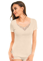 Джемпер умеренного объема из хлопкового трикотажного полотна. Втачной короткий рукав. Округлая горловина с окантовкой.