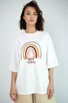 Джемпер умеренного объема из хлопкового трикотажного полотна. Втачной короткий рукав. Округлая горловина с окантовкой.