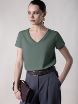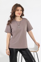 Джемпер прямого силуэта из хлопкового трикотажного полотна. Слегка спущенный короткий рукав. Округлая горловина с обтачкой.