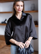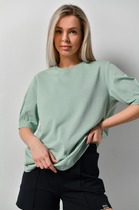 Джемпер умеренного объема из хлопкового трикотажного полотна -рибана. Втачной короткий рукав. Округлая горловина с окантовкой.