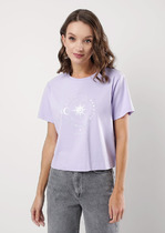 Футболка прямого силуэта из плотного хлопкового трикотажного полотна интерлок. Втачной короткий рукав. Округлая горловина с обтачкой. Сбоку вшивка,спереди принт.