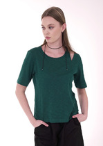 Базовая, малообъемная футболка из трикотажного, эластичного полотна. Округлая горловина, втачной рукав. Модель без боковых швов