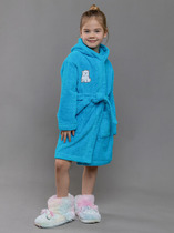 Халат для мальчика с капюшоном и на запах, фиксируется широким поясом на талии и пуговицей с петлей по горловине. Сбоку накладной карман. Выполнен из махры 80%Хлопок20%ПЭ. Украшен небольшой вышивкой.