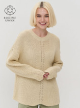 Толстовка для дома и отдыха свободного кроя из трикотажного полотна пике. Длинный рукав со спущенной линией плеча.По горловине капюшон со шнуром. По низу рукава манжет с внутренней резинкой, по низу изделия манжет, нашивка. Спереди принт.