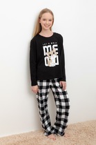Стильный хлопковый комплект для дома подарит тебе уют и комфорт! Футболка базовой конструкции с эластичной горловиной и тематичным принтом. Набивные брюки с эластичными манжетами, резинка по поясу для комфортной посадки.Уют и комфорт на каждый день!