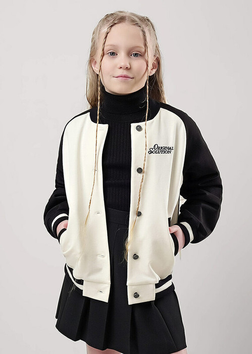 Стильный контрастный бомбер из футера станет модной новинкой в твоём гардеробе! Модель выполнена в стиле ""колледж"" и отлично подходит для создания классных повседневных образов и посещения школьных занятий.